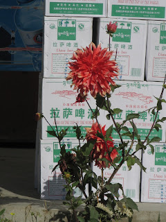 Flies are safe in Tibet. Flowers are revered. Dogs loved. Yaks and other livestock adorned with finery like bows, tassels, and capes. All things are considered beautiful and are to be cherished. That's just the Buddhist way and it makes for beautiful environs. Here's a sample of the beauty sans the fly that sat on my computer screen unafraid for nearly the entire 2 hours I worked.